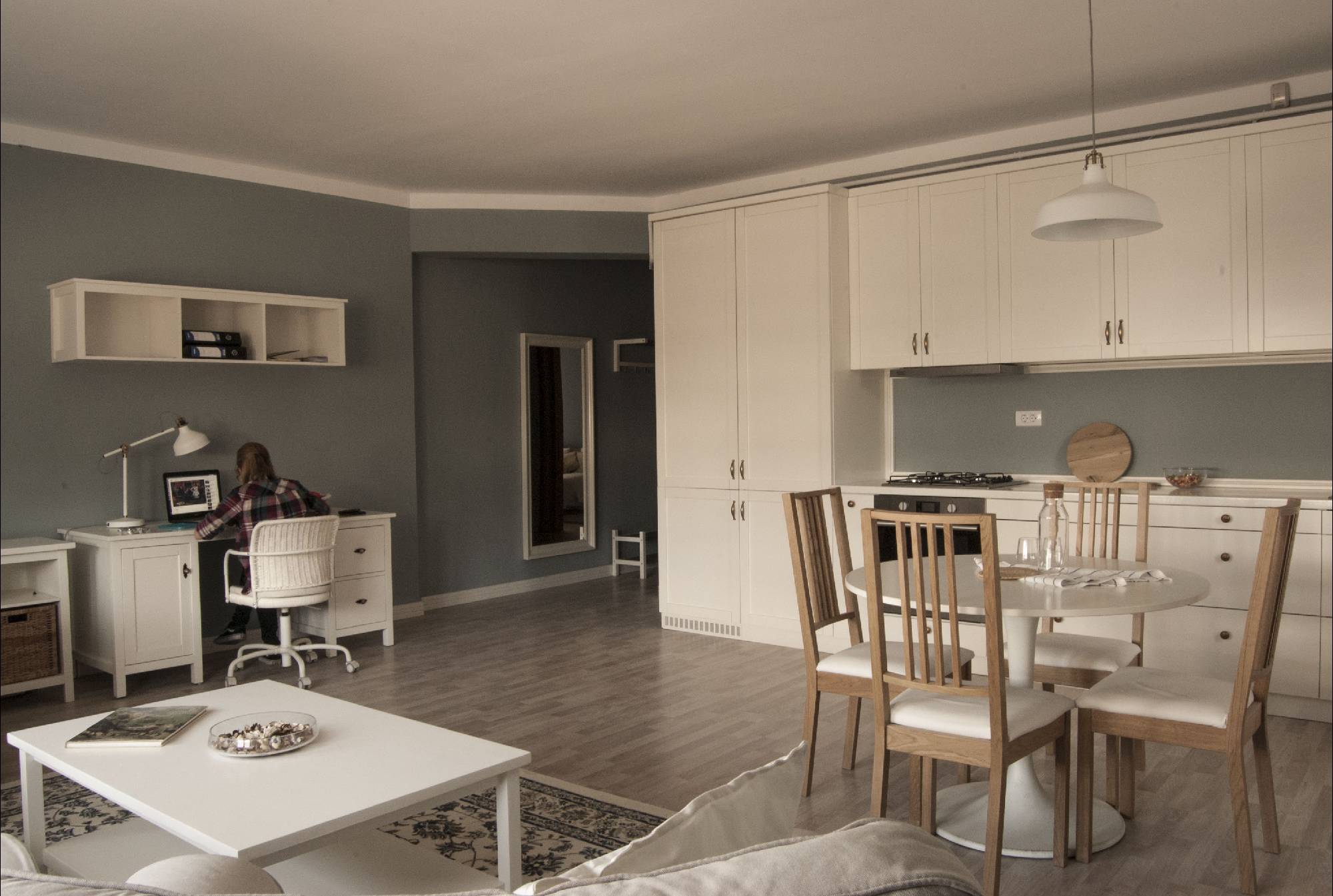 Totul a pornit de la un apartament de 64 și ceva de metri pătrați. Și am început ușor să construim. Apartamentul avea un dormitor de 12 metri pătrați, o baie de 7 metri pătrați cu un hol de aprope 5mp si un openspace de 36 metri pătrați.